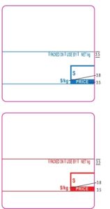 Medium Pre-printed labels come with captions such as PACKED ON, USE BY, NET(kg), $/kg, $ PRICE already printed on the label. The scale then fills in the information needed. These labels reduce the amount of wear on the scale’s thermal print head as only the basic information is printed.